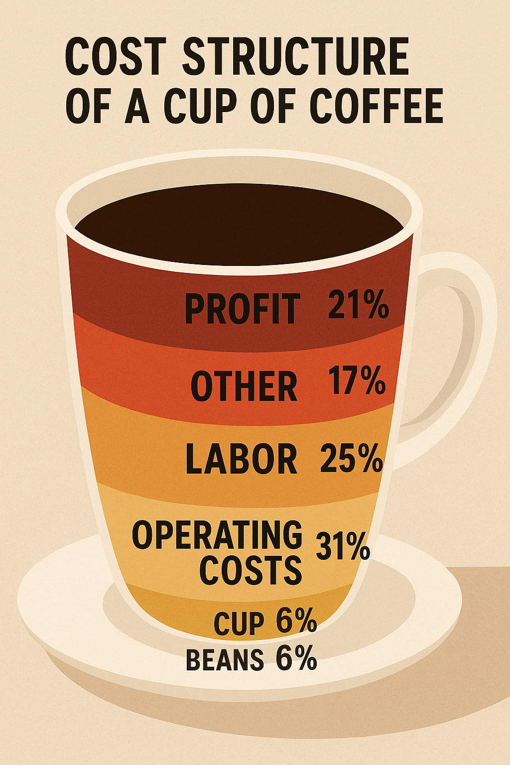 즉, 120원은 이론상 가능한 ‘원재료 중 일부 비용’일 뿐이며, 현실적인 카페 운영비를 고려하면 커피 한 잔의 총 원가는 4,000원 안팎으로 계산됩니다. 순이익은 판매가의 12~15% 수준입니다.