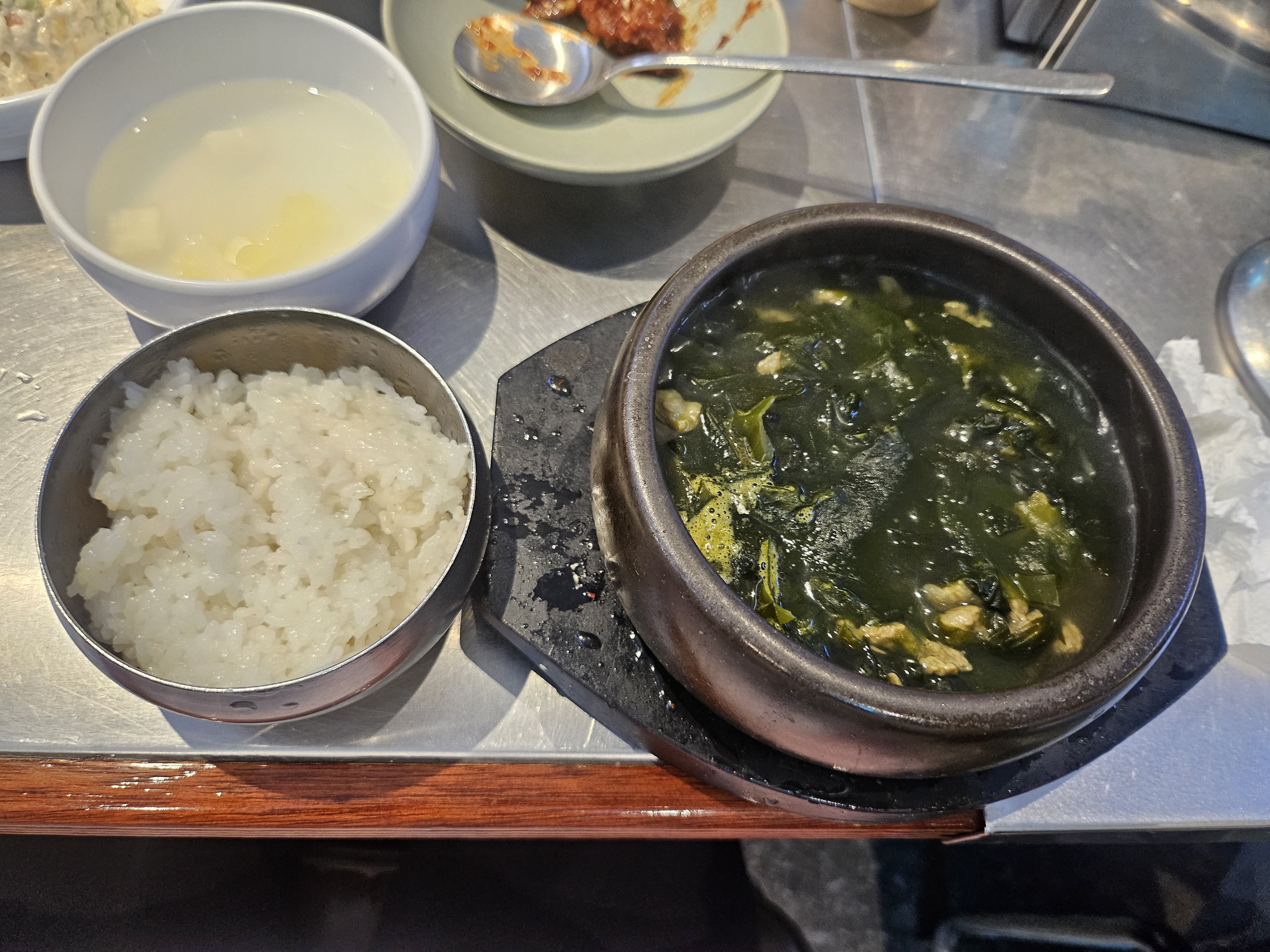 미역국은 진한 국물 맛이 일품이에요. 소고기와 미역이 듬뿍 들어가 있어서 ‘생일상’ 느낌 제대로! 무엇보다 생일자와 어린이에게는 무료라는 점이 너무 센스있더라고요. 가족 방문 시 딱이에요!
