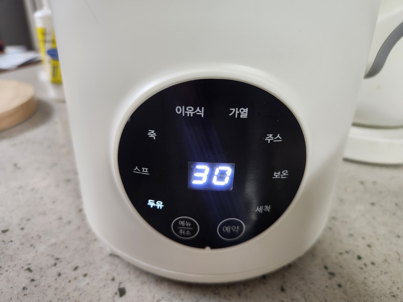 총 약 30분 동안 작동, 도중에 끓고, 갈고, 다시 끓는 과정이 반복됩니다.