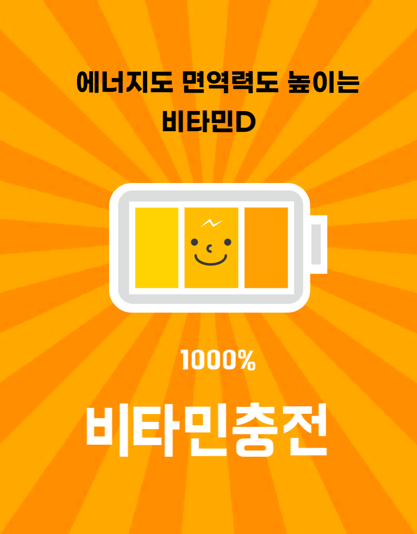 날씨가 급격히 추원진 요즘! 야외활동은 못하고 자꾸 실내에서 움츠려 들고 계시지 않으신가요? 햇빛에 충분히 노출되지 못한다면, 면역세포를 생산하는 비타민D가 부족해질 수 있어요. 오늘은 햇빛 비타민이라도 불리는 비타민D에 대해서 알아볼까요?