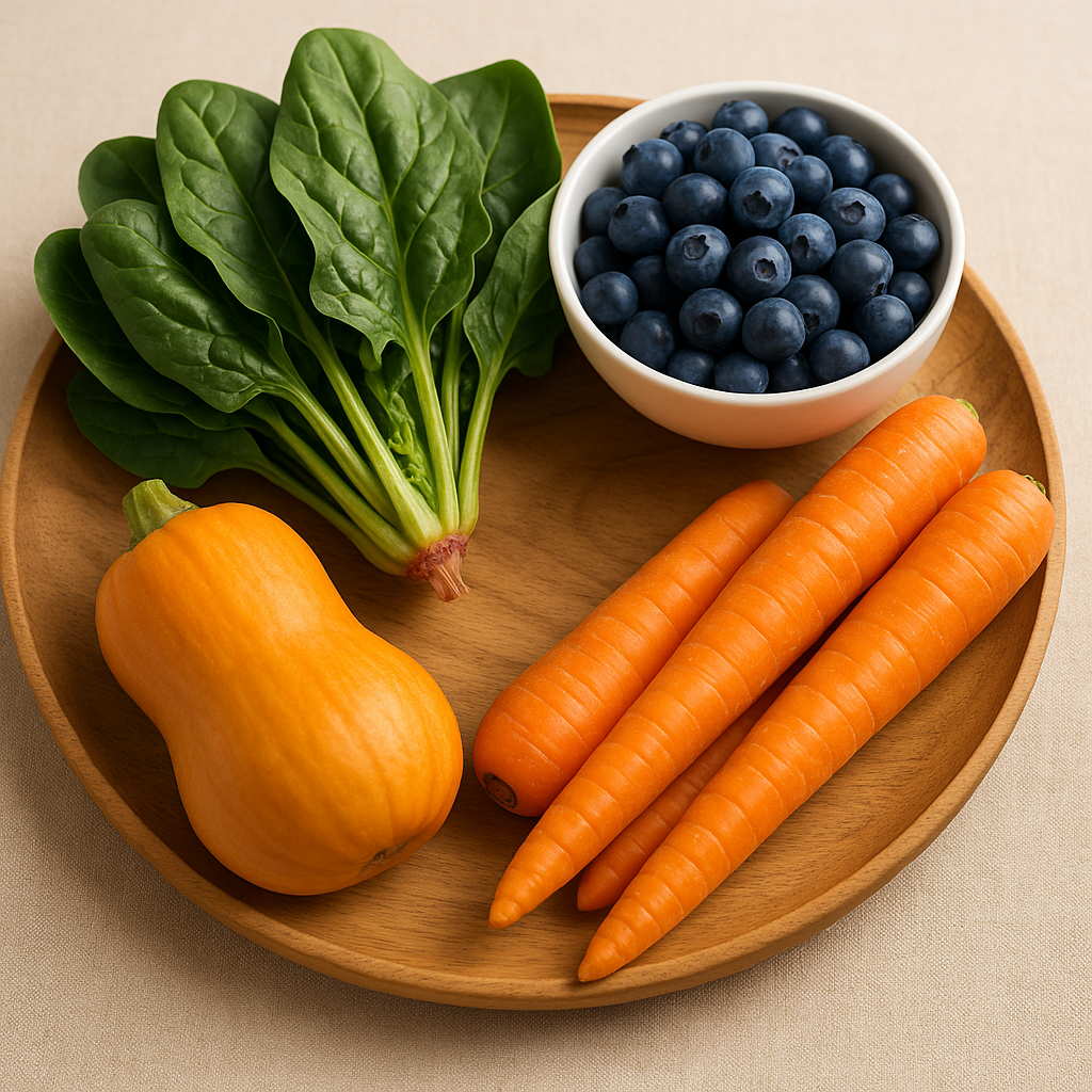 - 당근 & 호박: 베타카로틴 풍부 → 눈 노화 예방, 야맹증 예방