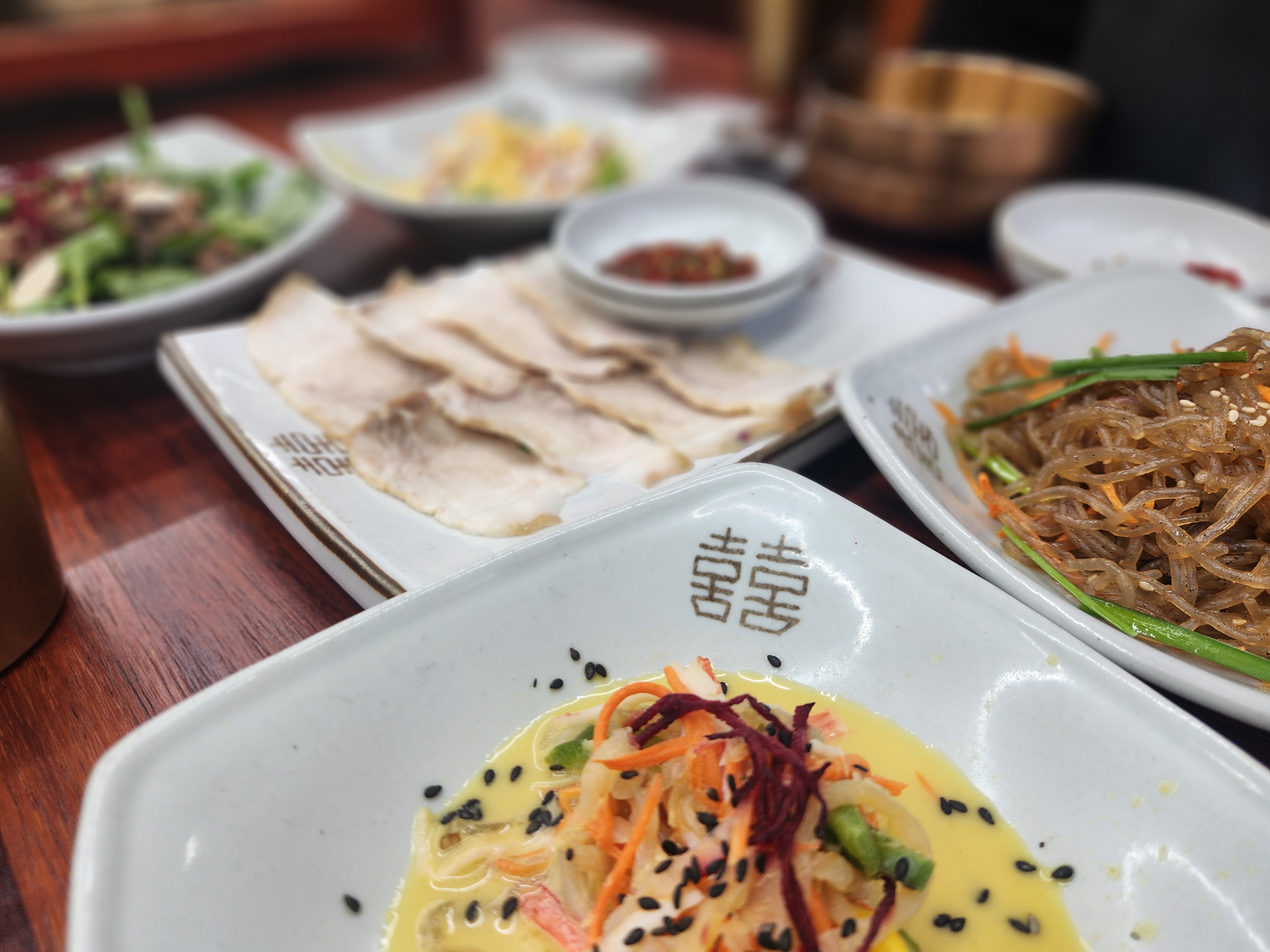 돌계단을 따라 올라가면 마주치는 기와지붕과 나무 창살 문, 입구부터 정성스러움이 묻어나요. 내부도 널찍하고 조용한 분위기입니다. 프라이빗 룸(매화, 난초, 국화, 대나무 등 테마별 룸)이 따로 준비돼 있어서 상견례나 가족모임에 딱 좋습니다.
