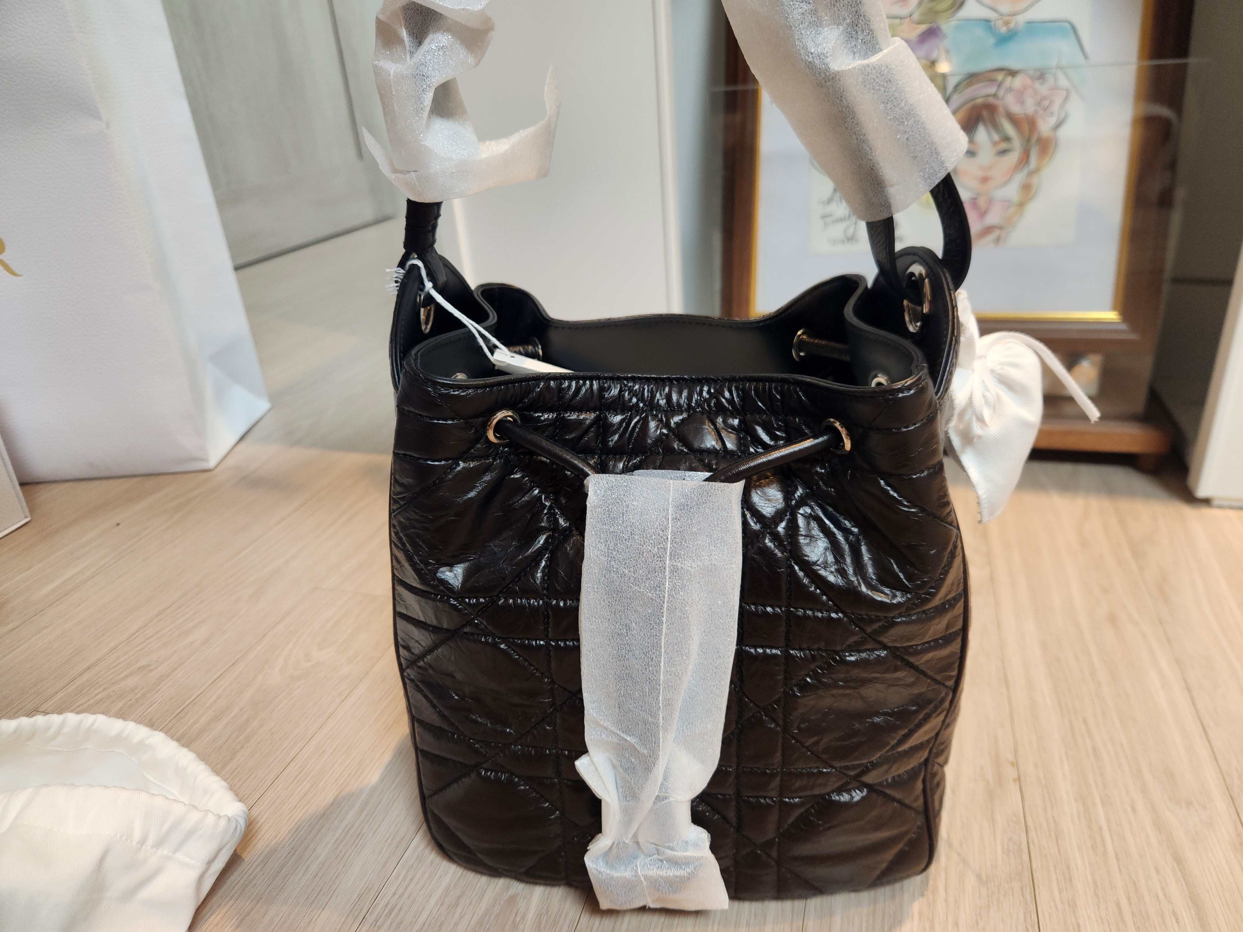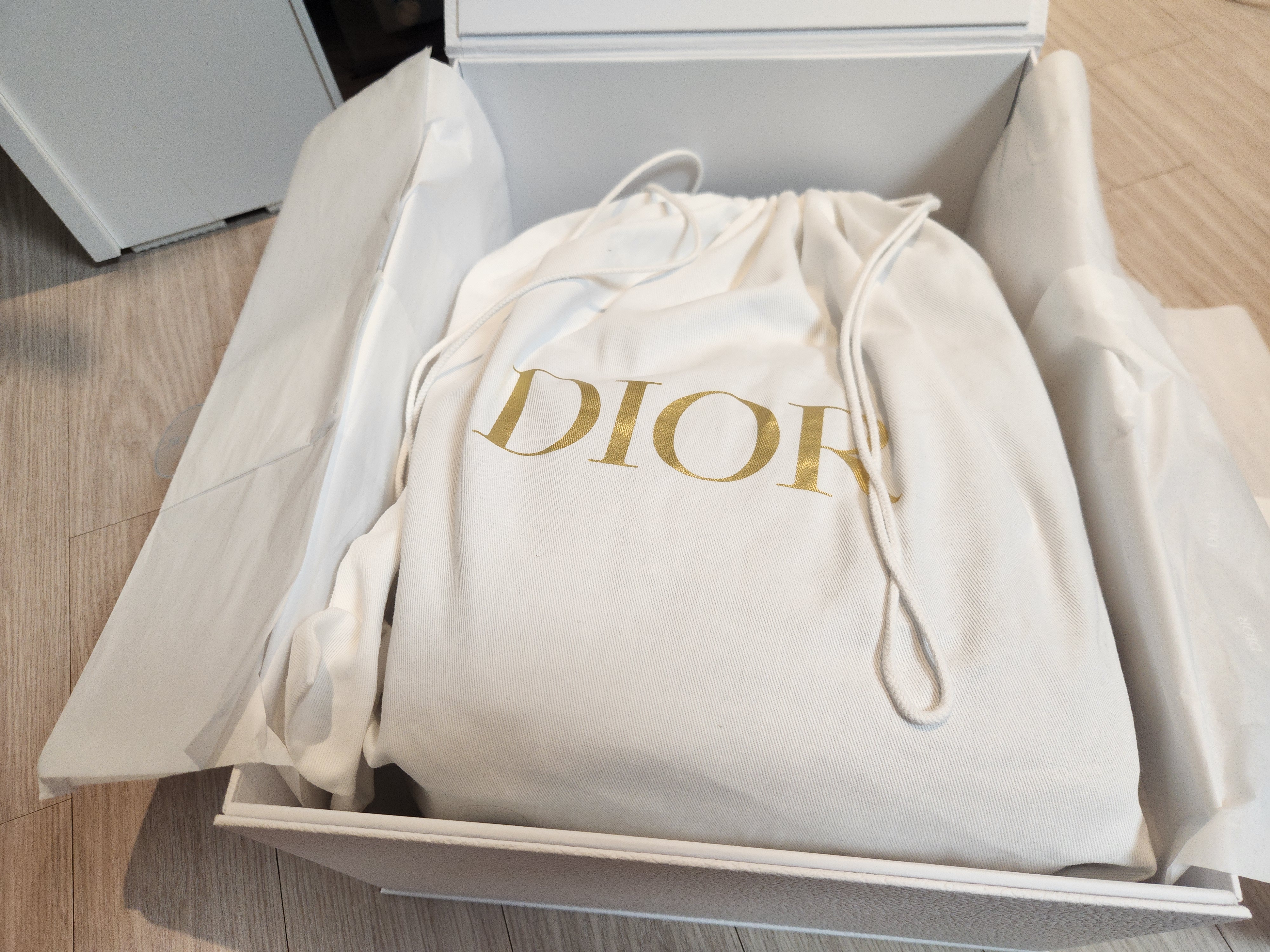 집에 와서 언박싱을 하는 순간 정말 설레었습니다. 박스를 열자마자 고급스러운 디올 쇼핑백과 함께, 정갈하게 리본으로 묶인 하얀 박스가 등장했어요. 안쪽에는 디올 로고가 새겨진 더스트백에 본품이 곱게 담겨 있었고, 품질보증서와 사용 설명서, 그리고 카드 형태의 인증서까지 꼼꼼하게 들어 있었습니다. 포장 상태가 완벽해서 ‘역시 명품은 다르구나’라는 생각이 절로 들었죠.