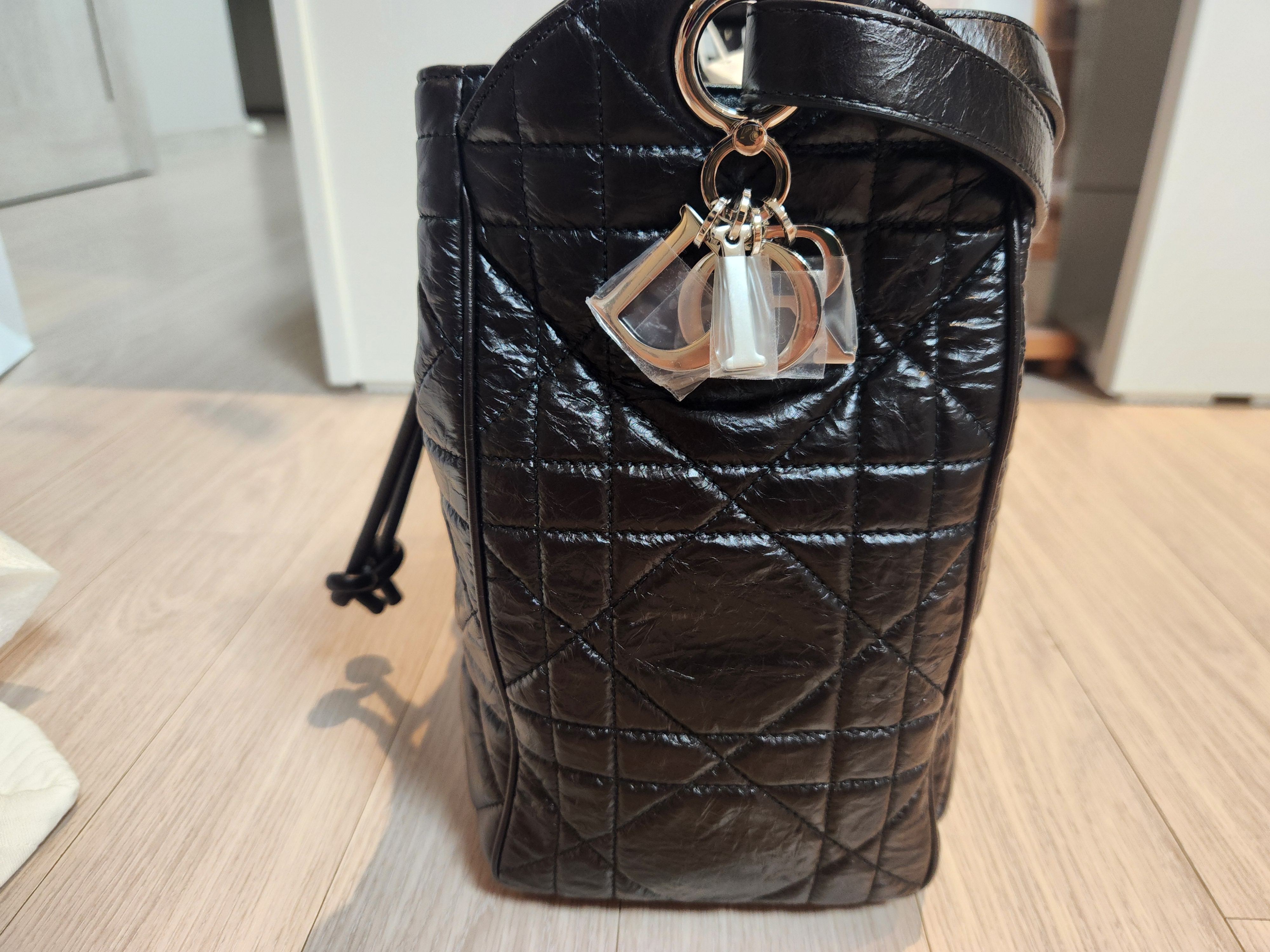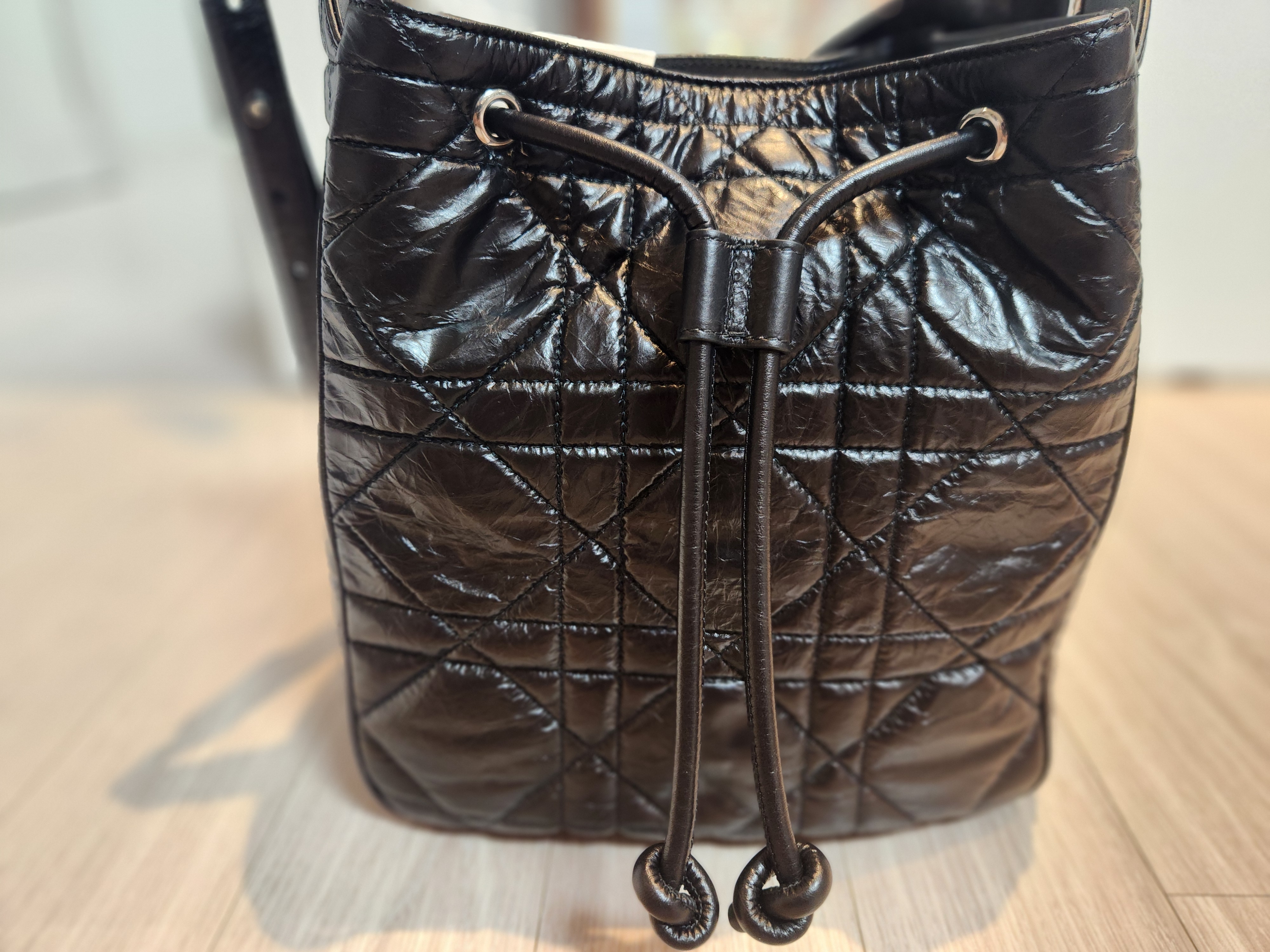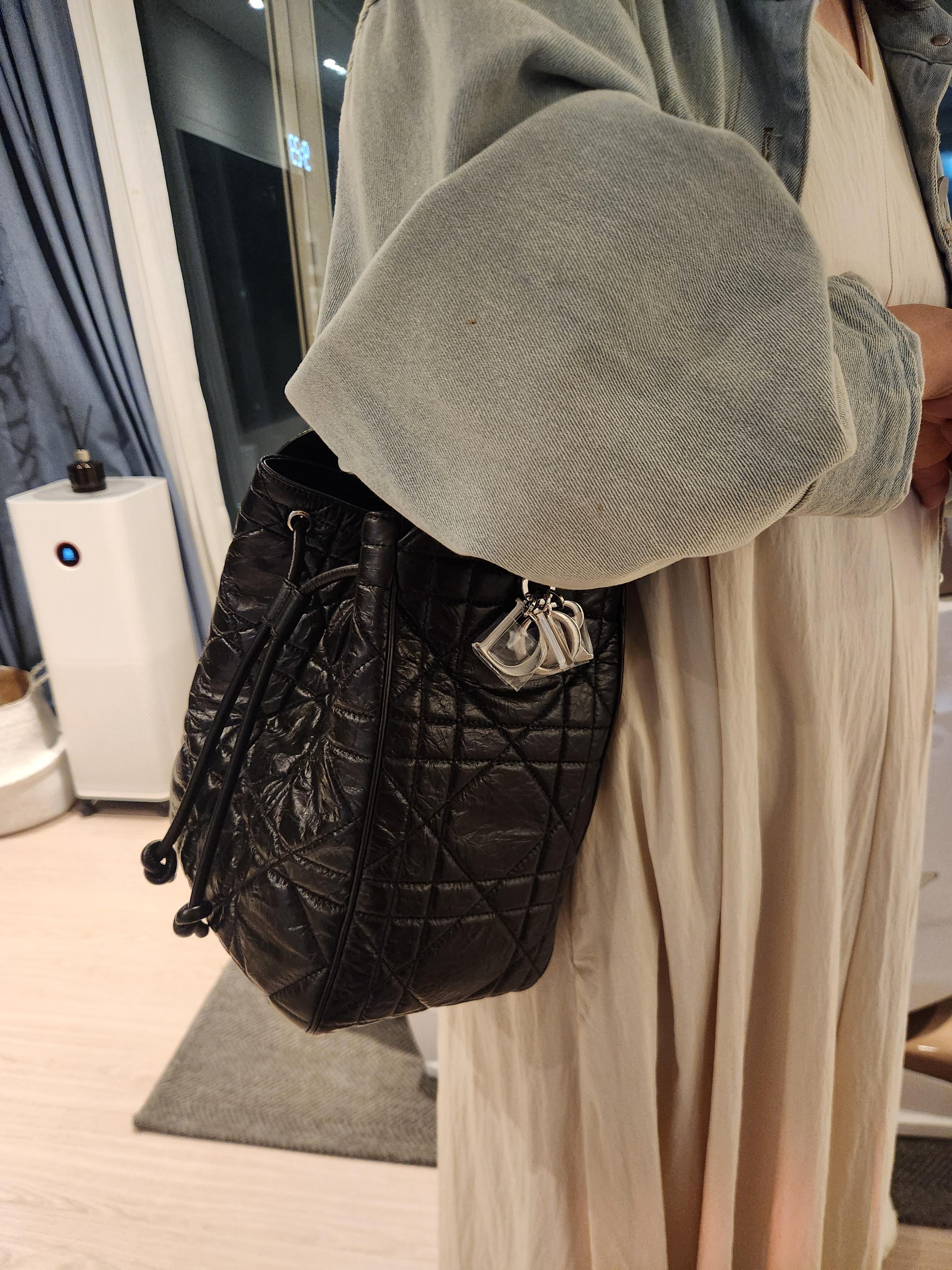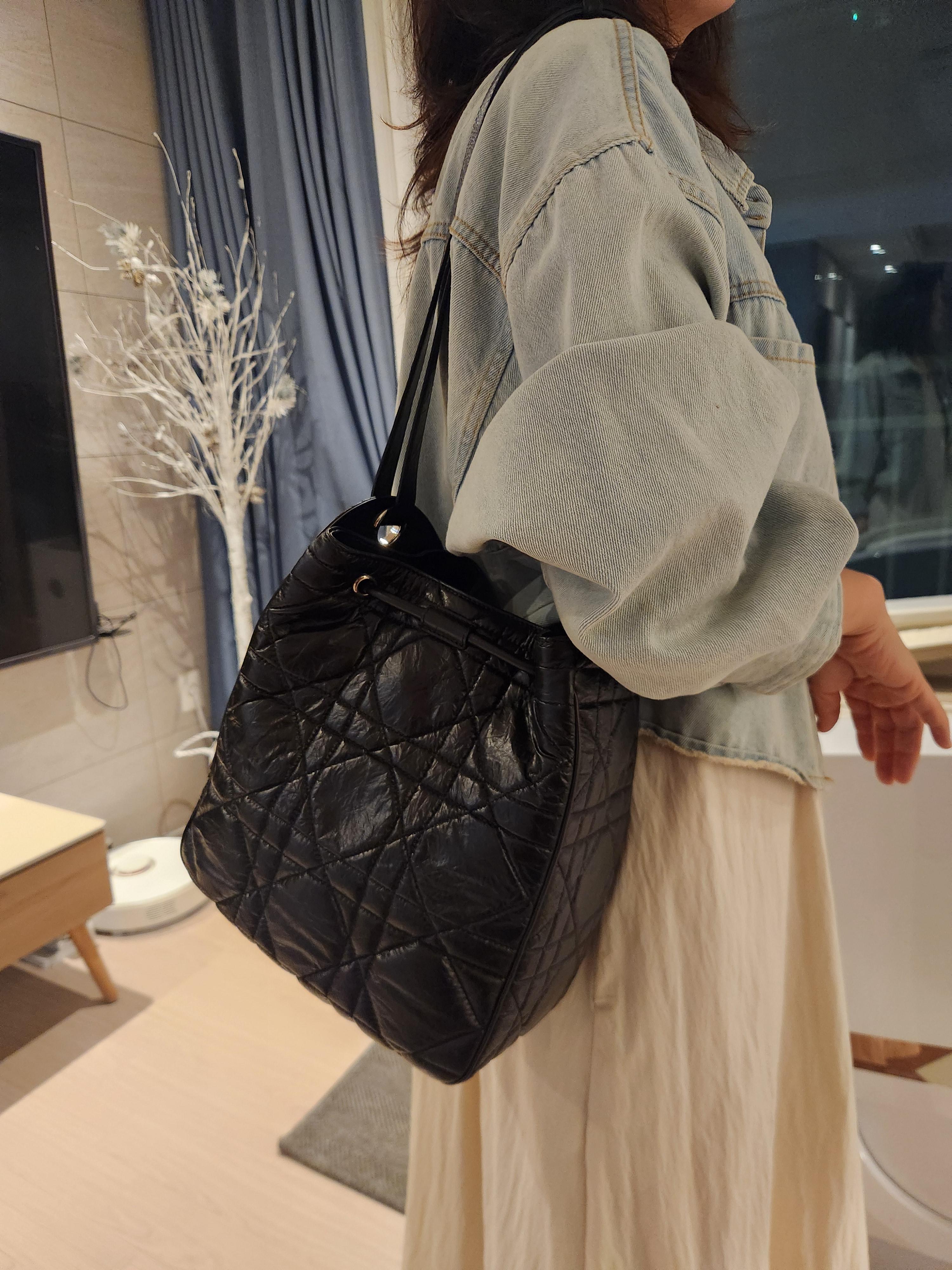 제가 받은 건 디모션백 미디엄 사이즈인데, 실제로 보니 크기도 적당하고, 가죽 질감이 아주 고급스러웠습니다. 광택감이 은은하게 도는 블랙 컬러에 은장 하드웨어 조합이라 어떤 옷에도 쉽게 매치할 수 있을 것 같았어요. 특히 앞면의 CD 로고가 고급스러우면서도 과하지 않아, 데일리로도 부담 없이 들 수 있다는 점이 마음에 들었습니다.