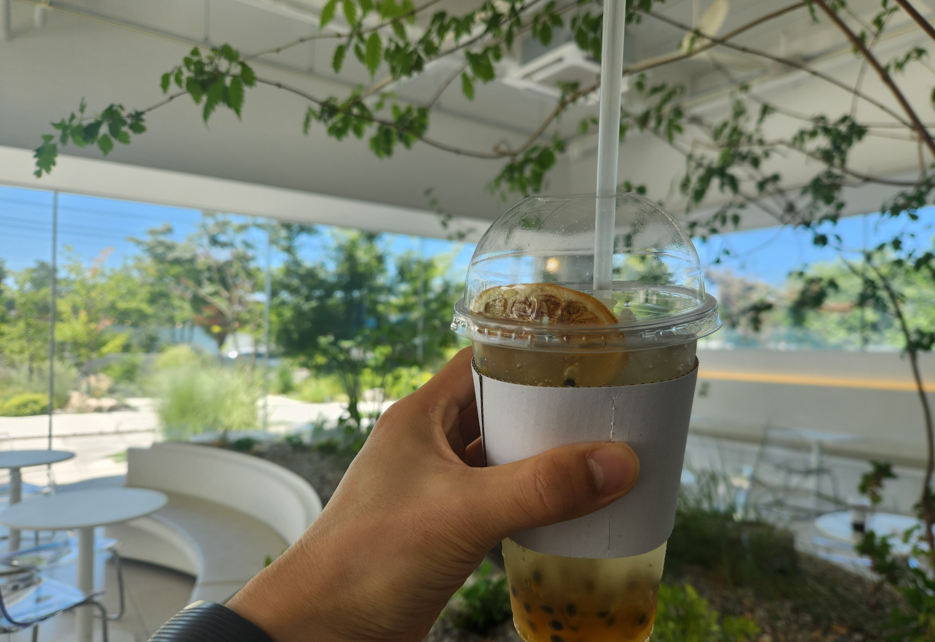 • 패션후르츠 에이드 - 상큼함이 가득! 진짜 과육이 들어가 있어서 인공적인 맛이 전혀 안 느껴졌어요. 여름에 딱 어울리는 청량한 맛. 굿👍