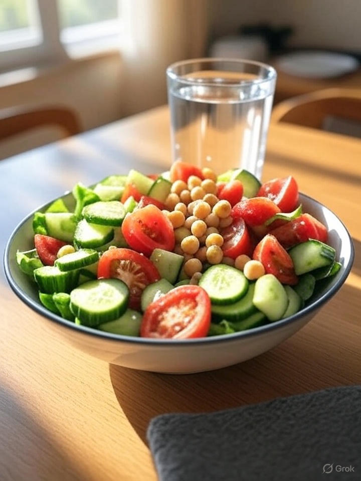 • 채소, 과일, 토마토, 콩류 위주의 식단